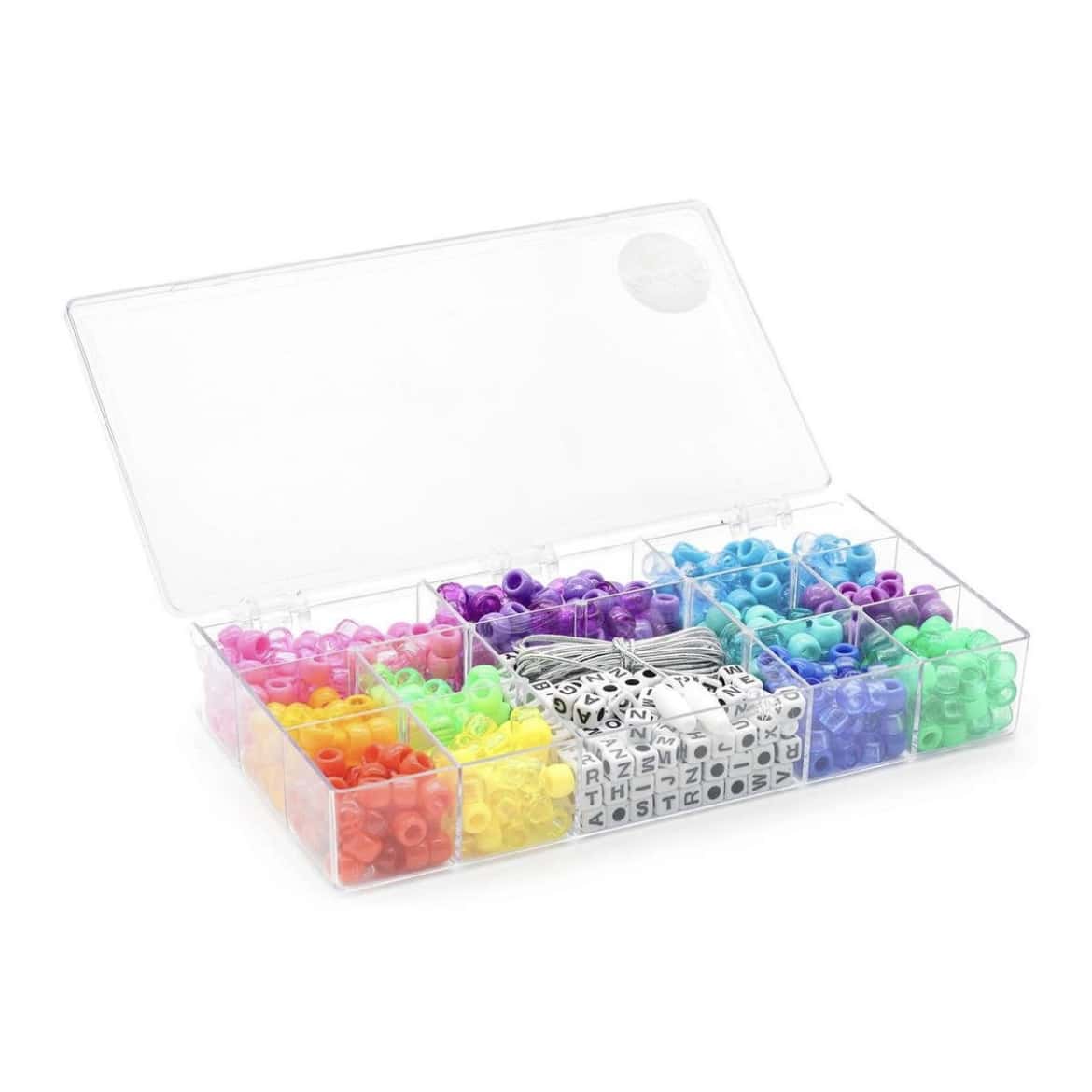 Perlesæt med skønne bogstaver og perler i smukke farver.